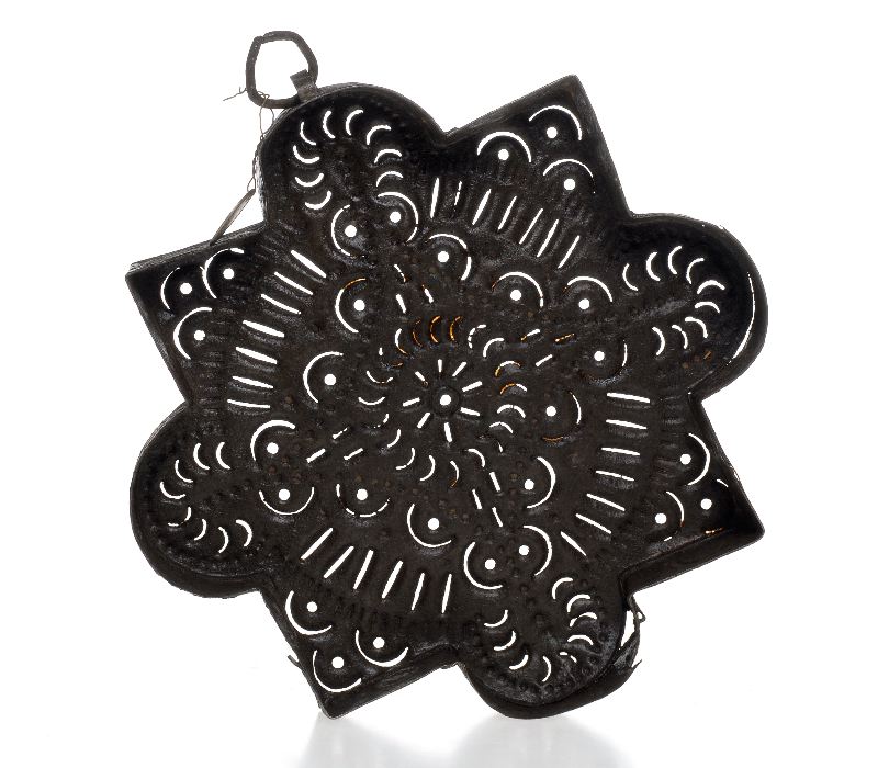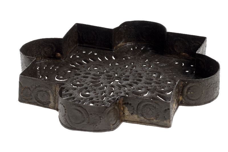 Åttauddig stjärna med varannan udd spetsig och varannan rund. Bottnen perforerad i mönster.