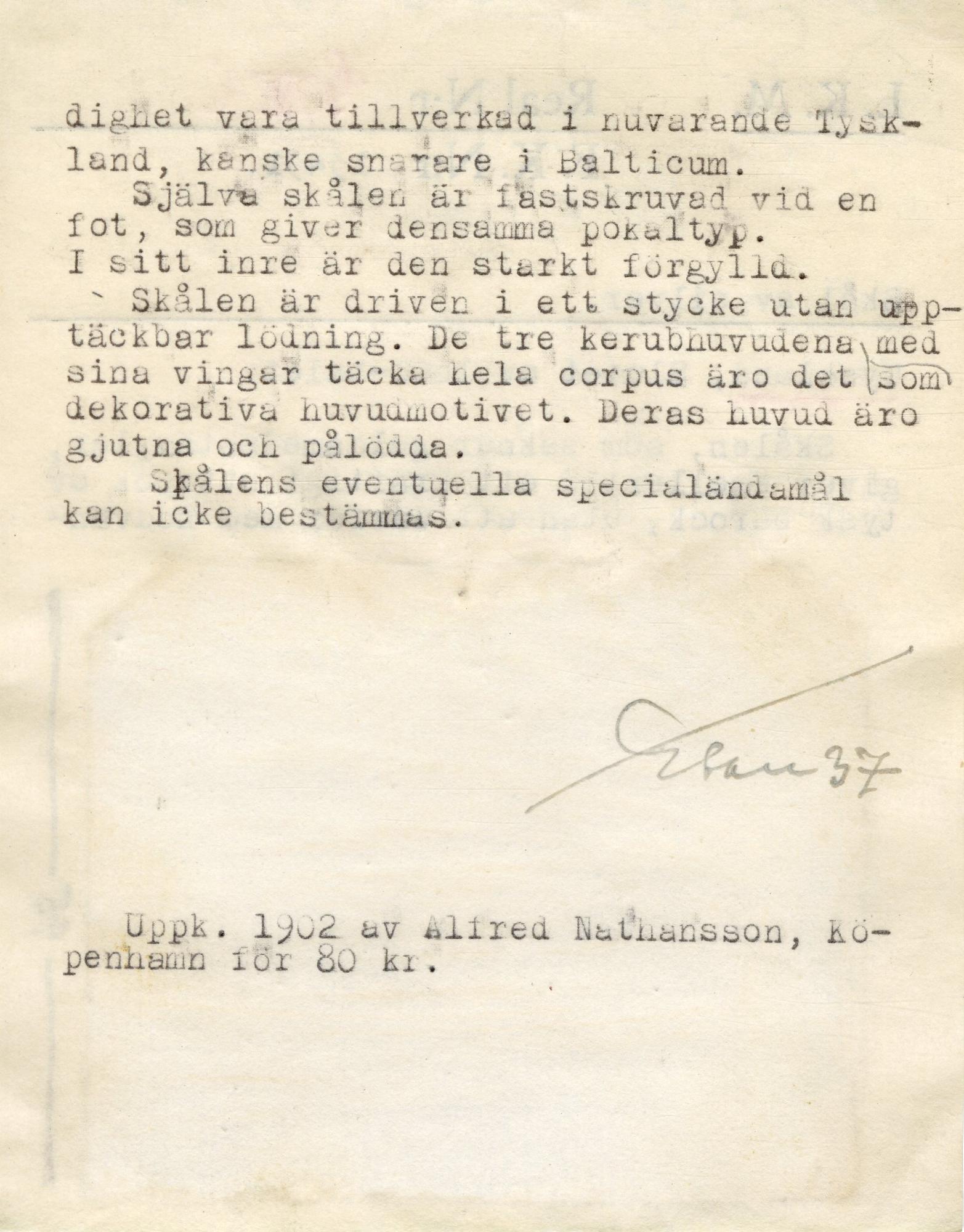 Förvärvat genom Intendenten G. Karlin. Enligt Karlins lappkatalog tysk eller baltisk.