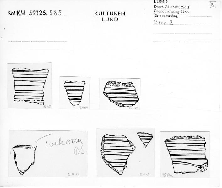 Fynd från grundgrävning för byggmästare Karl Mildners kontorshus april-maj 1966.