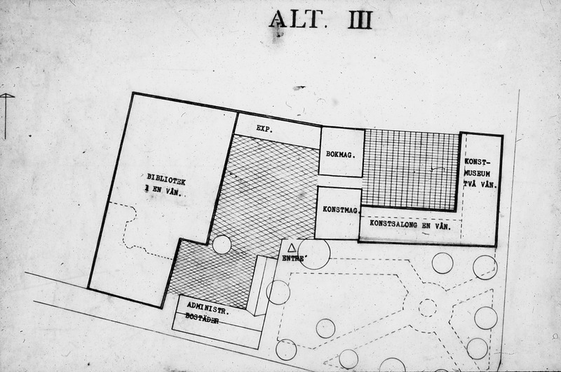 Lund. Kv. S:t Peter 27. Förstudie till stadsbiblioteket. Plan. Arkitekt Flemming Lassen.