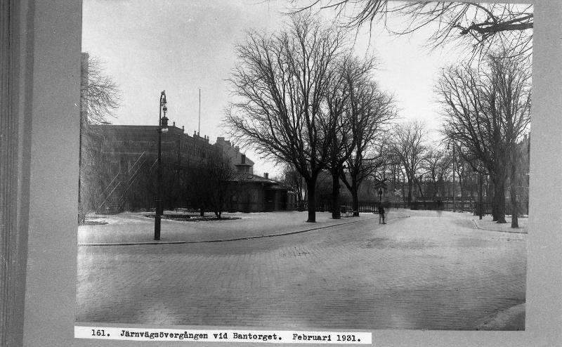 Lund. Repro av neg överlämnade av byggnadsnämnden. G:a neg nr 161. Bantorget. Järnvägsövergång. fr. Ö. Repro fr A 1757.