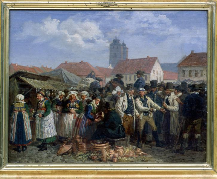 Lund. Torgdag i Lund. J W Wallander, olja 1858.