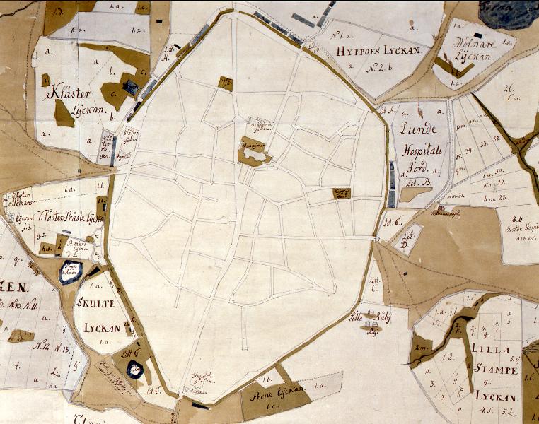 Lund. C. M. Espman. 1784. Geometrisk charta öfver staden Lund. Sting. Lund. Detalj.