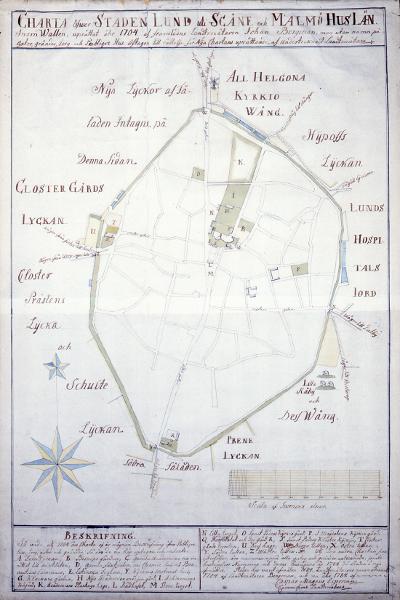 Lund. C. M. Espman. 1784. Charta öfwer staden Lund.