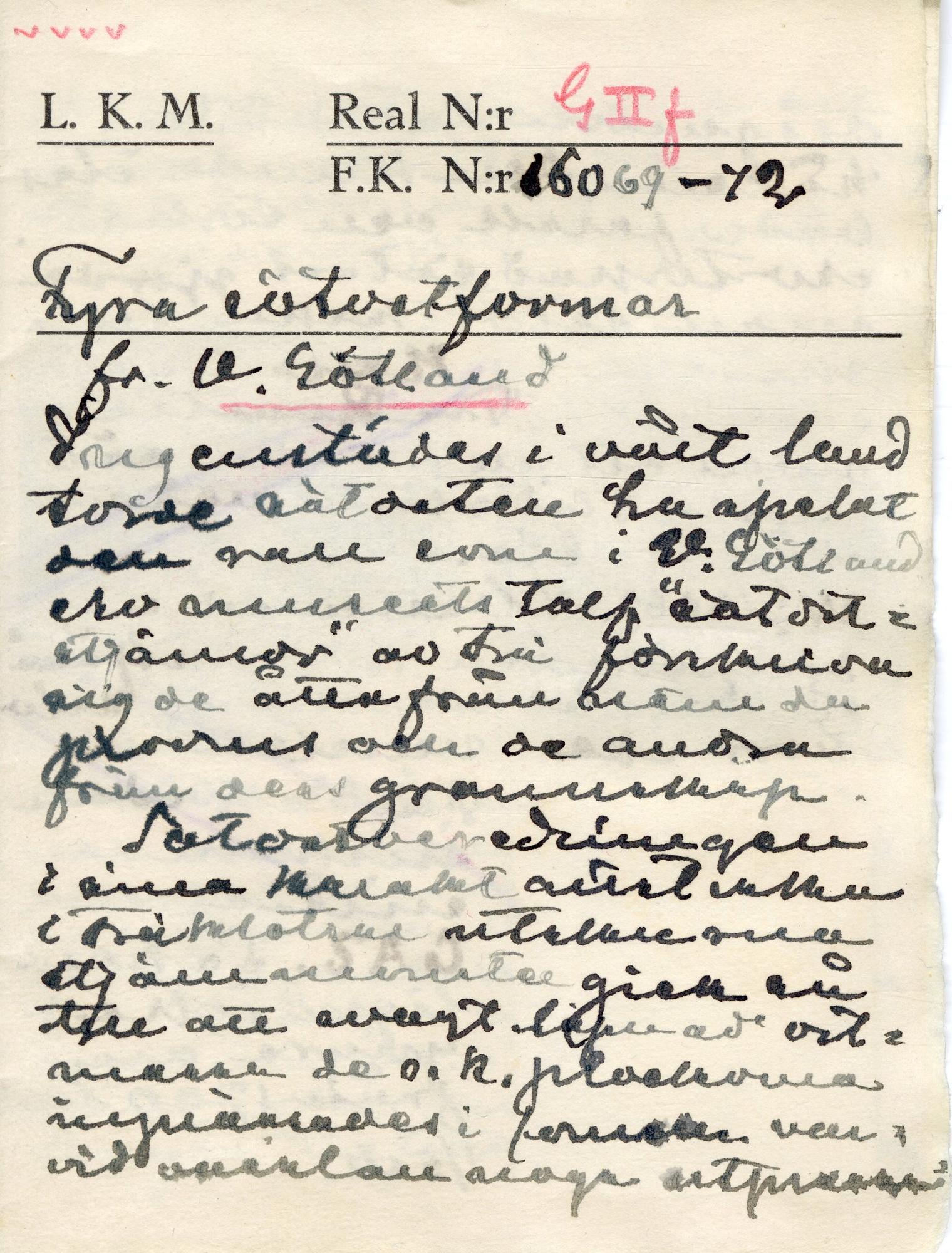 Uppköpt 1906 av G Karlin (på auktion) ur adjunkt Anders Nilsson i Skaras samlingar [prisuppgift saknas]. Pengar till förvärvet skänktes av godsägare Gottfrid Warholm, Tuna.