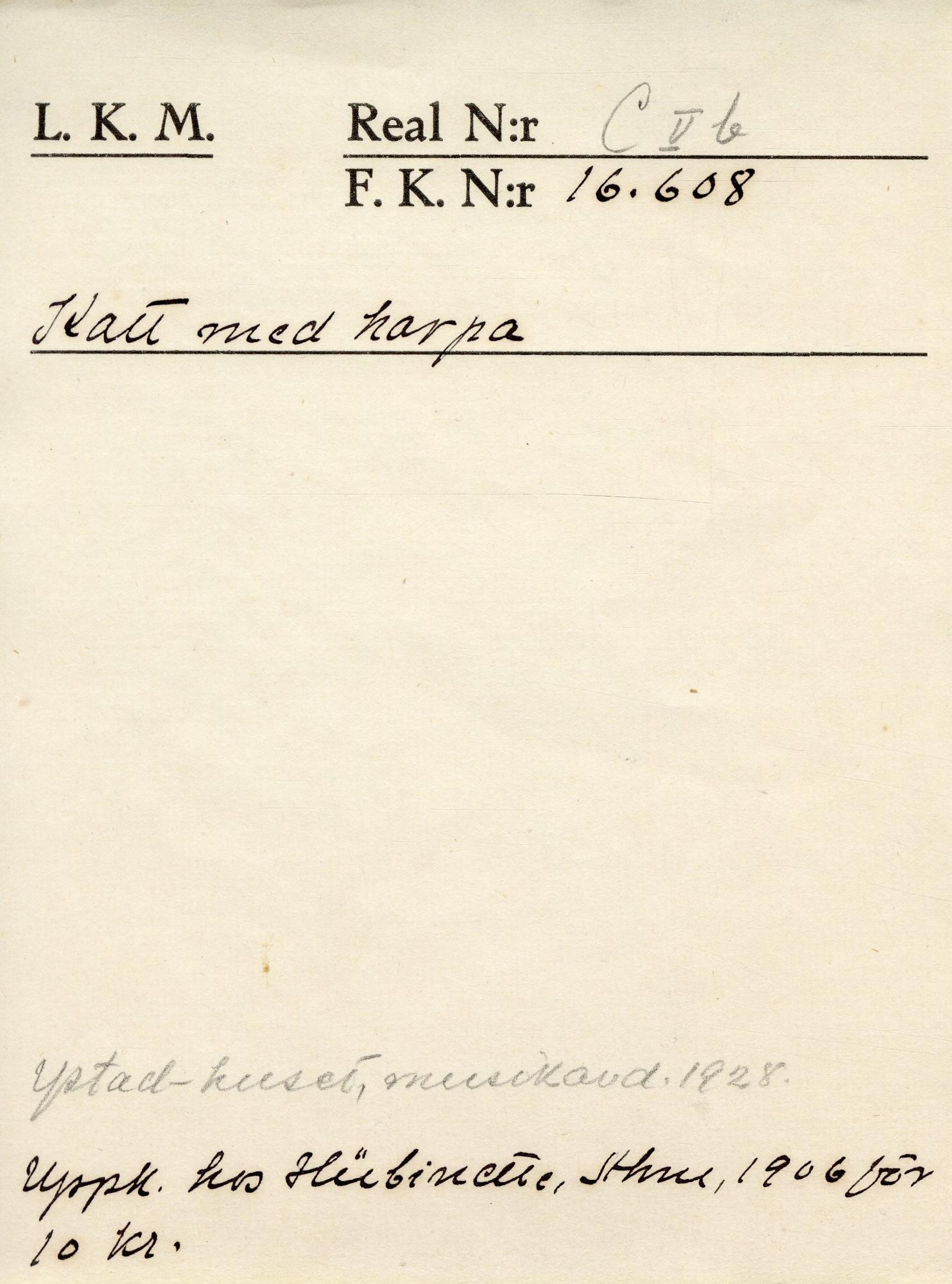KM 16608 :: katt med harpa, speldosa