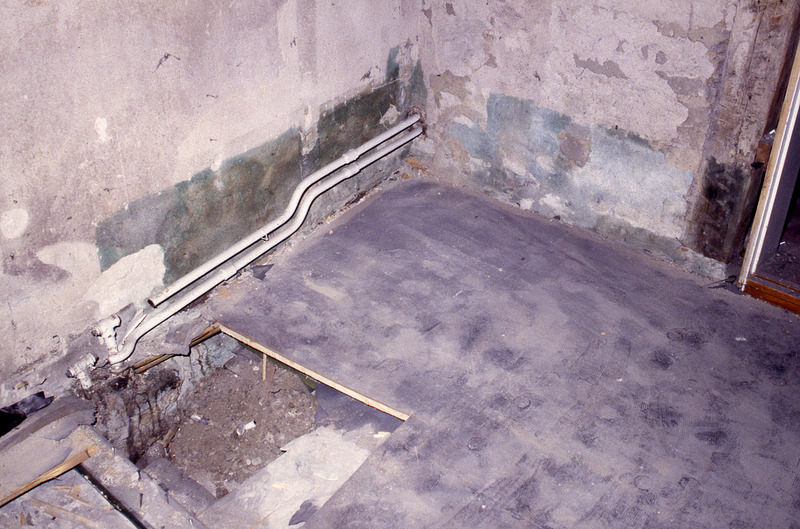 Lund. Kulturen 24. Rustmästarebostaden. Nordvästra rummet. Golvet. Nordöstra hörnet.