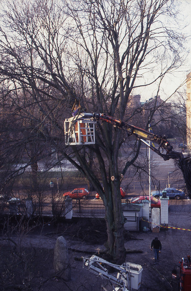 Lund. Tegnér 1. Trädfällning framför Vita huset.