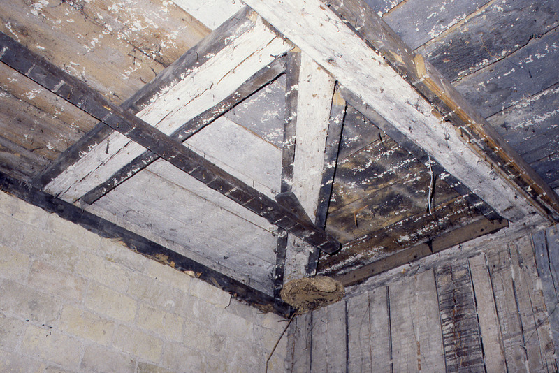 Lund. Kulturen 24. Lindforska huset. Västra museisalen. Taket i nordvästra hörnet.