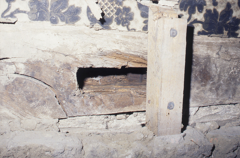 Lund. Kulturen 24. Lindforska huset. Barnkammaren. Detalj av stolpe väster om fönster.