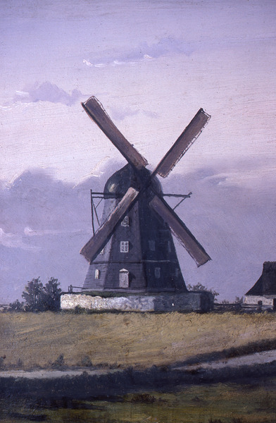 Lund. Lerbäckshög. Oljemålning. A. HJ. Lindqvist. 1871 KM 46777. Detalj möllan.