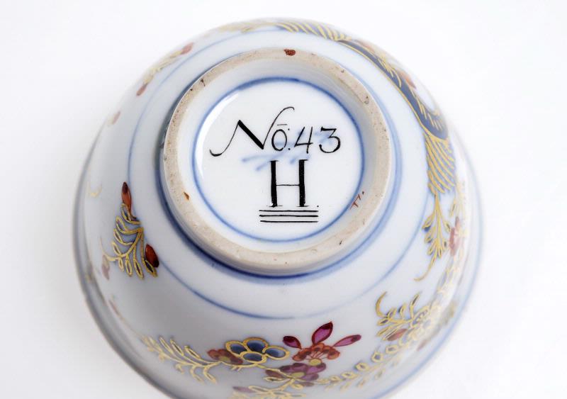 Svärdsmärke (marcolinimärke) i blått under glasyr samt i svart No43 H [avritat på katalogkort].