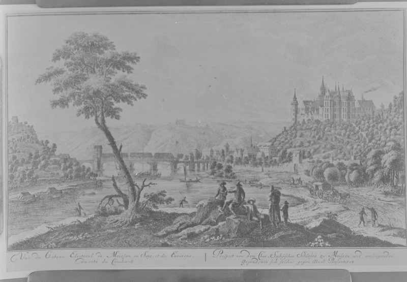 Bilder, utst. Europ. porslin.; Vue du chateau Electoral de Meissen en Saxe et des Environs du coté du Couchant.