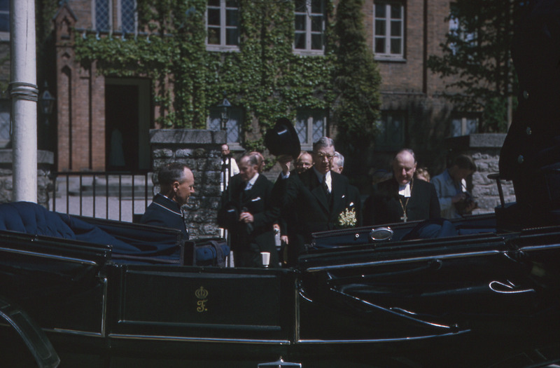 Lund. Kung Gustaf VI Adolf besöker Lund. Efter besöket i Biskopshuset.