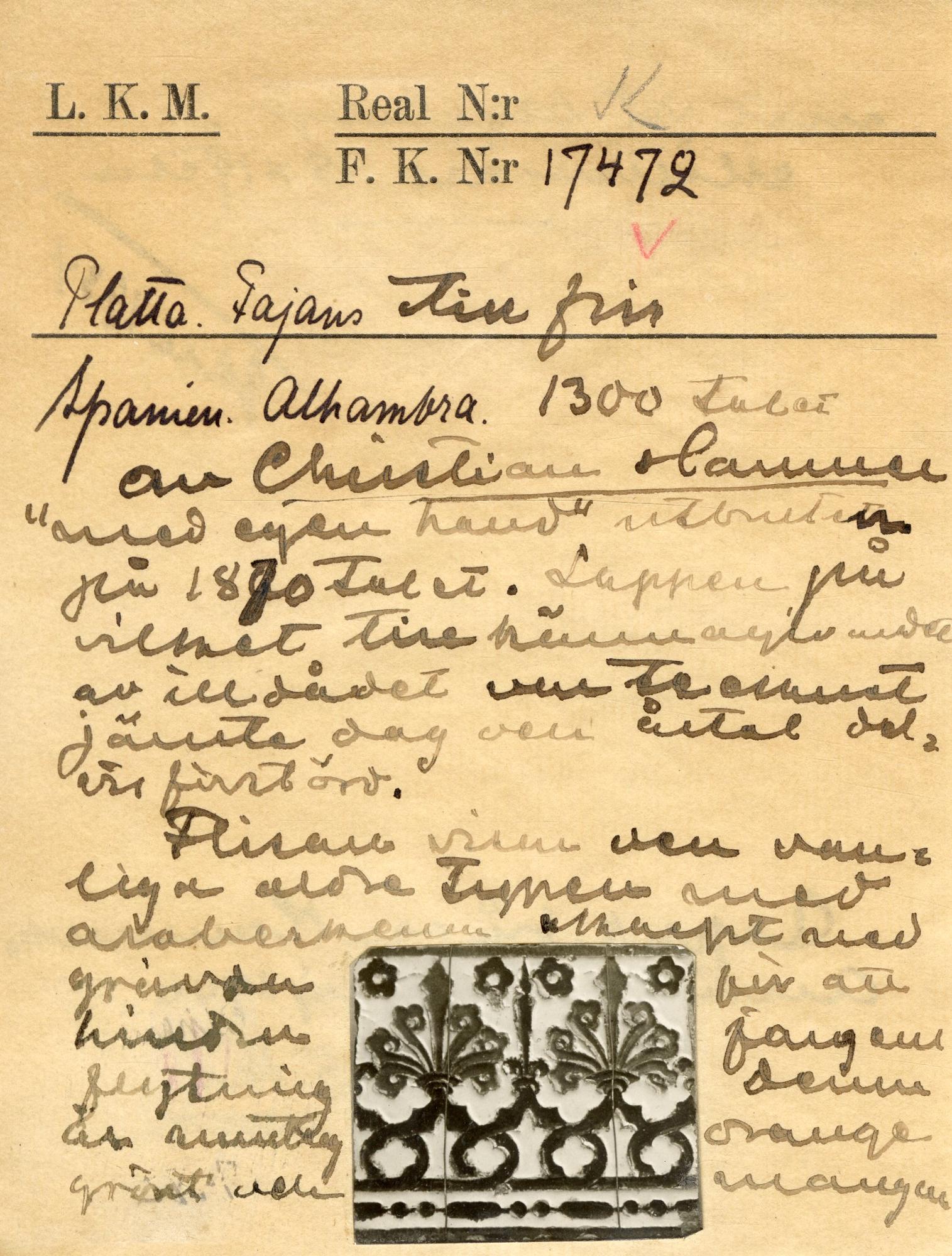 Fajansplatta från Alhambra, Granada.