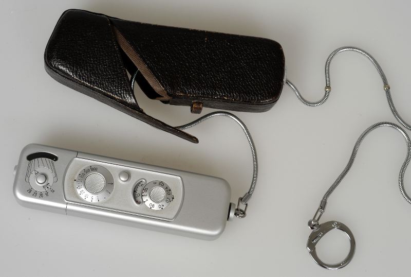 Miniatyrkamera, "spionkamera" komplett med filmkassett. Märkt 971364.