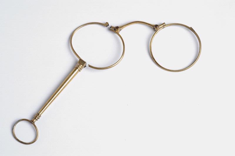 Lornjett, gulmetall utan glas, 7 cm, trasig.