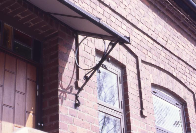 Lund. Väderkvarnen 8. Skärmtak. Gatufasad.