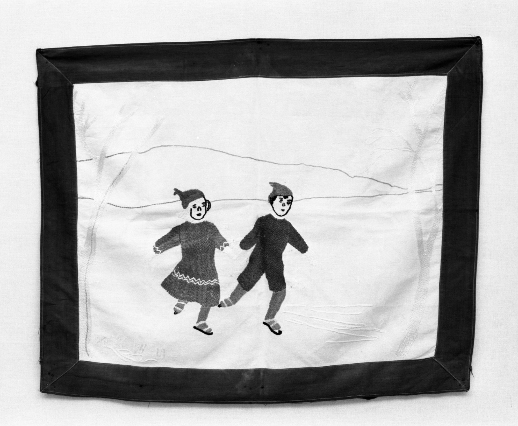 Inlånade bonader för utst. Broderande Bonader Maj 1976.