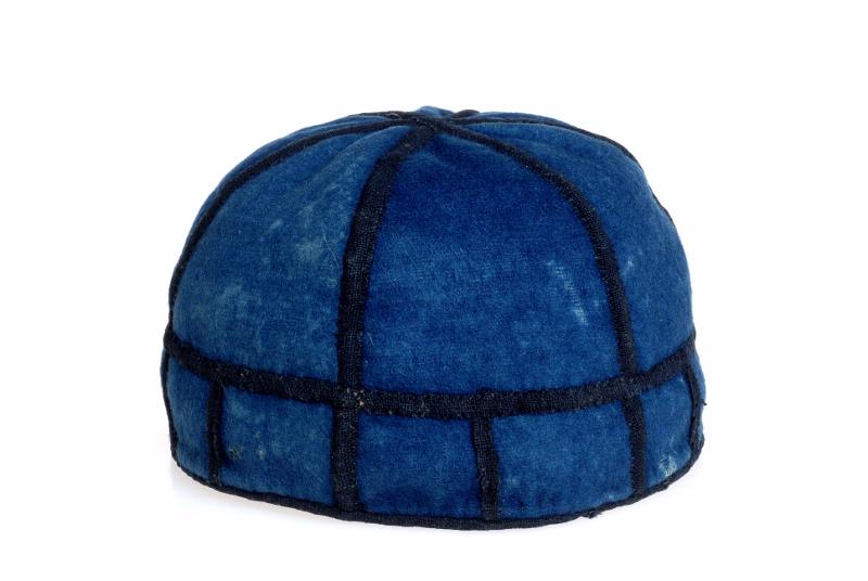 Av 6 kilar i blå vadmal. Kant- och dekorationsband av svart ull. Foder av grågul vadmal.