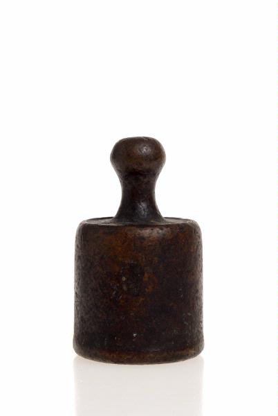 Cylindrisk och rund knopp. Avrundade kanter. Flera ristade kryss på ovansidan samt spridda siffror. Kryss ristat även på knoppen.