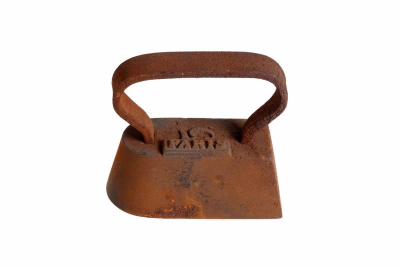 Svagt rundad botten. På pressjärnets ovansida står PARIS 5. ingjutet. Vanligt redskap hos hattmakare.