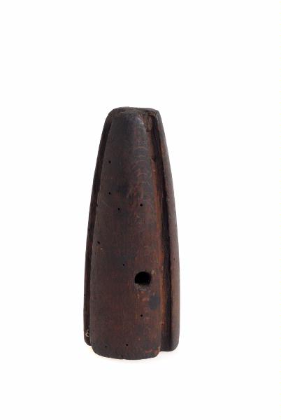 Avlång, konisk topp med fyra längsgående kanaler som repen löper i innan de tvinnas samman. I mitten av toppen är ett hål för handtag (saknas).