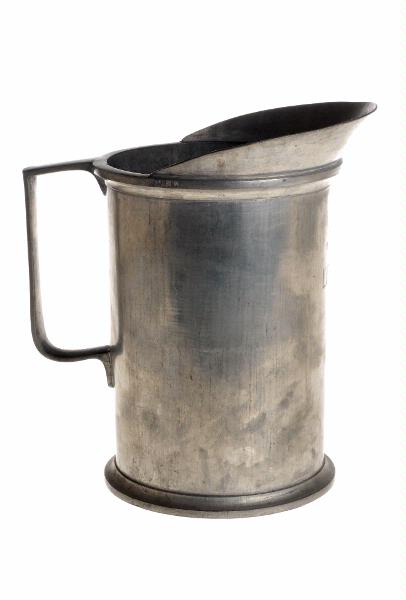 Cylindriskt mått med hålkälad fotkant, snås och rak grepe med rundad kant nedtill.