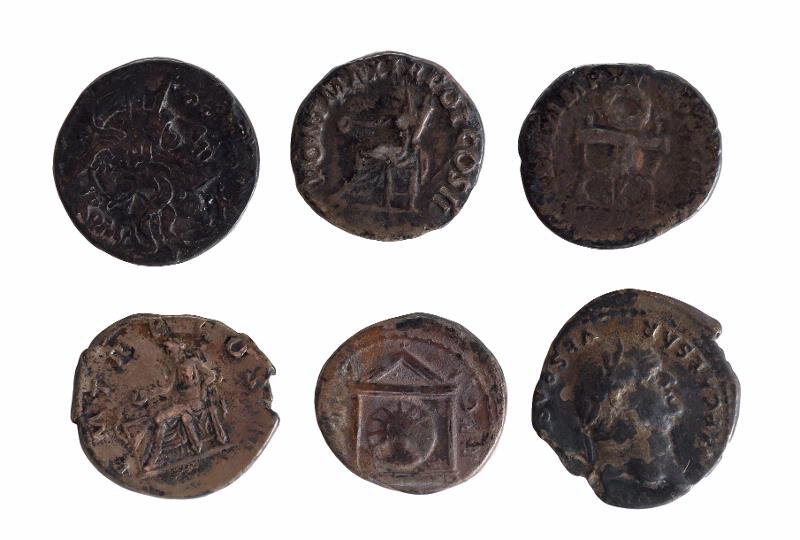 Mindre mynt med mer eller mindre skönjbara figurer och bokstäver. Alla har dock en man i profil på ena sidan.
