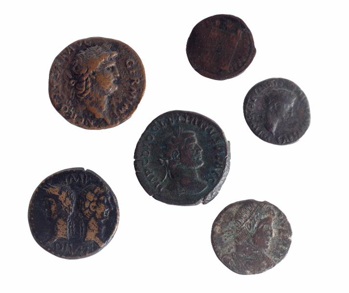 Romerska mynt av varierande storlek och tjocklek. Kejsarna oidentifierade.