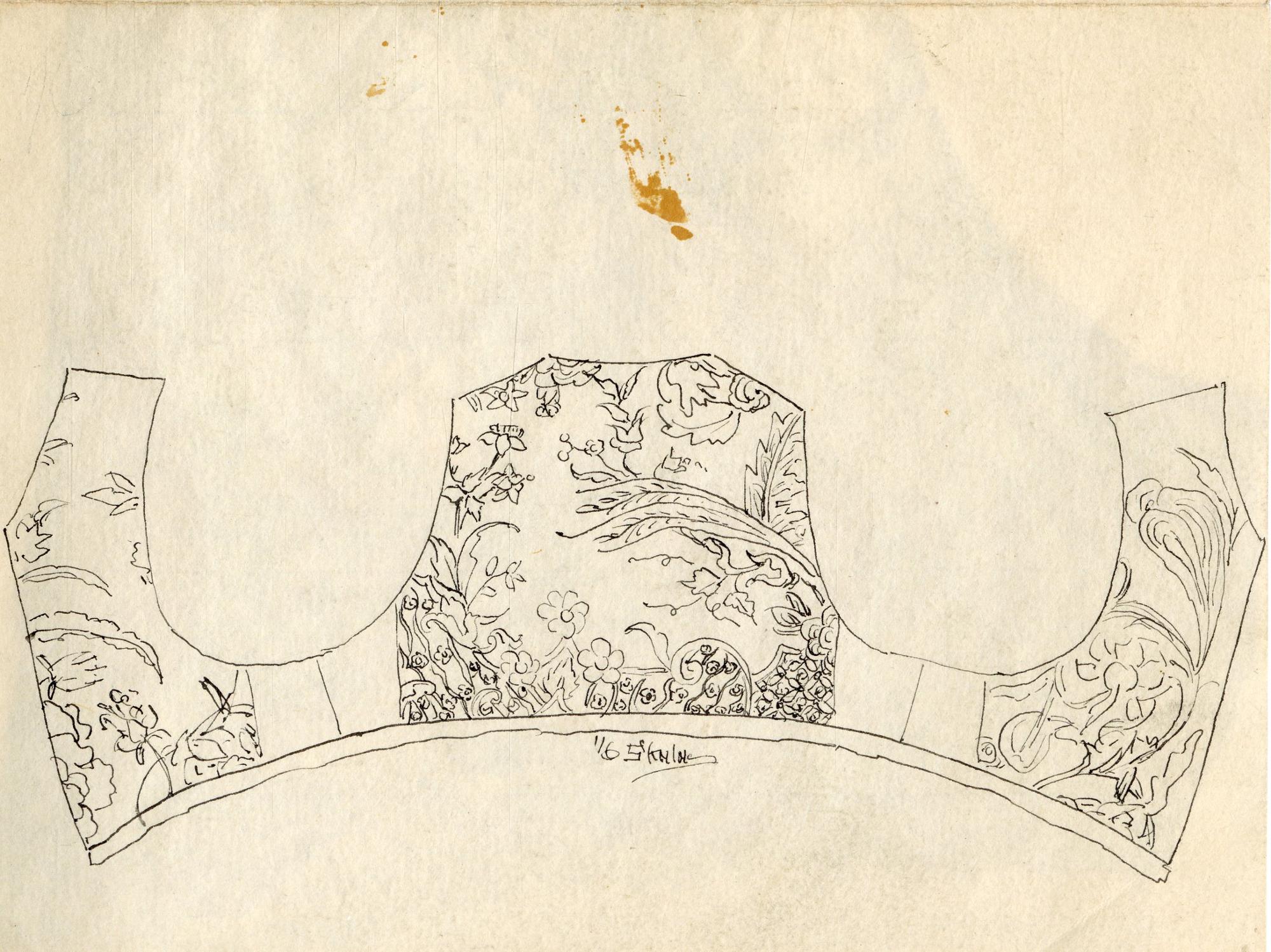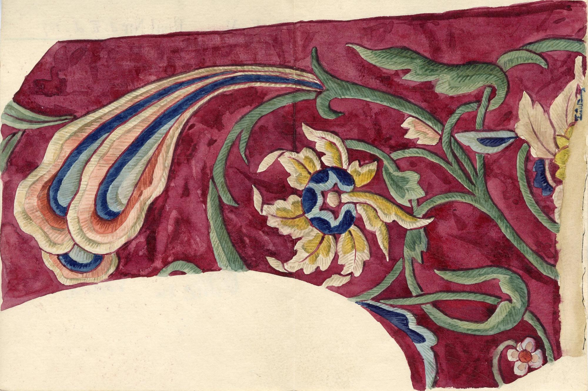 Utställningstext Folkkonst Design 2009: Liv av broderat importsiden från Kina, köpt eller skänkt från högreståndsmiljö.