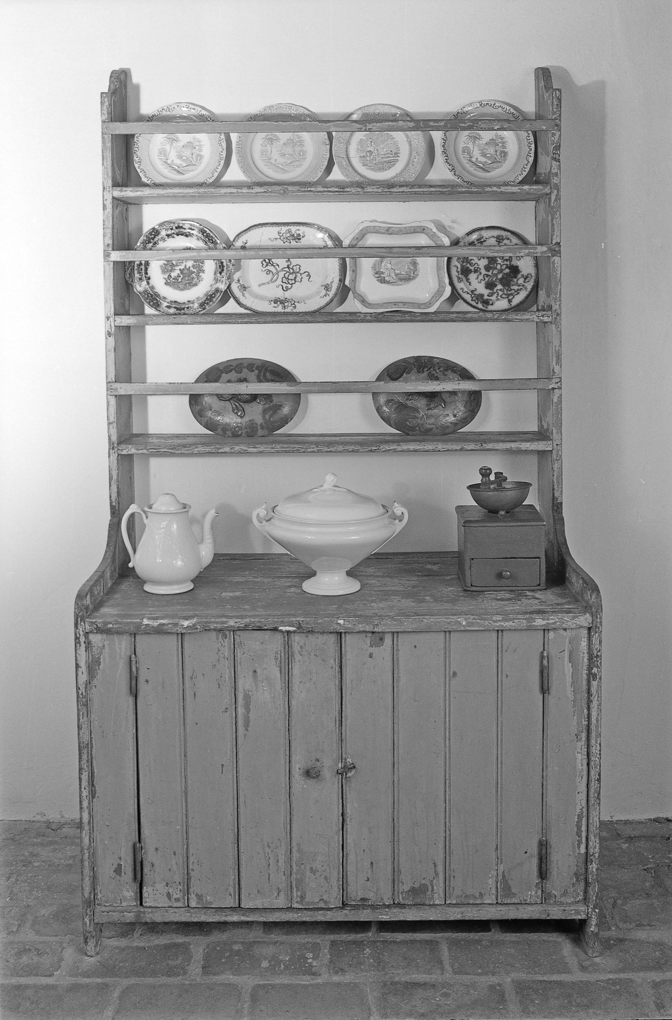 Omärkt. Skåp med tallrikshylla, porslin, Thomanderska samlingen.
