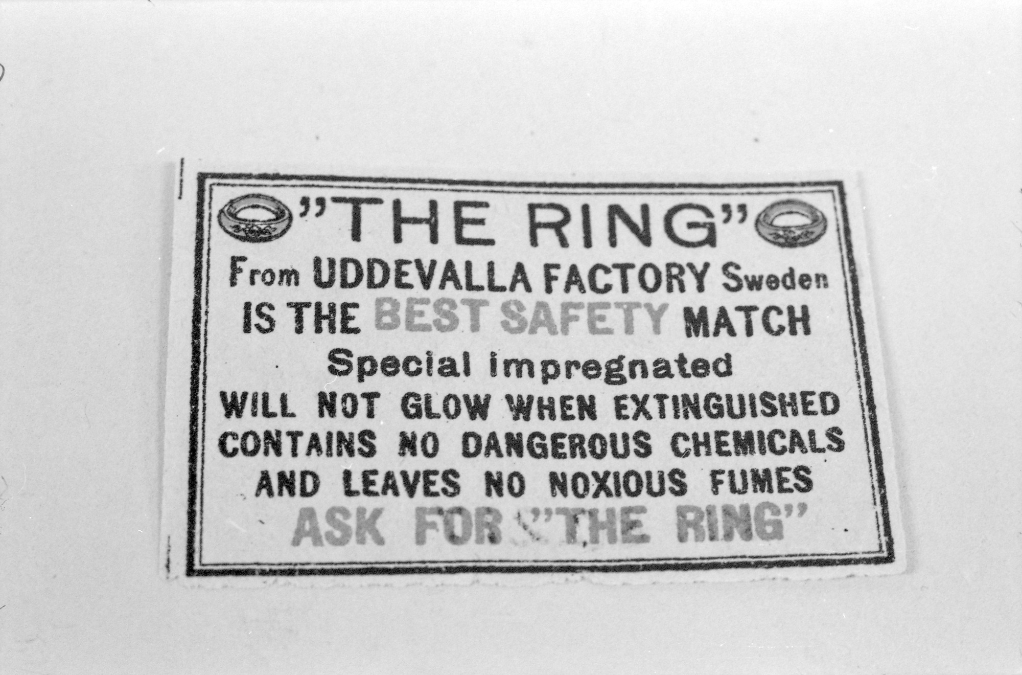 KM 80217. Tändstiketikett, the ring.