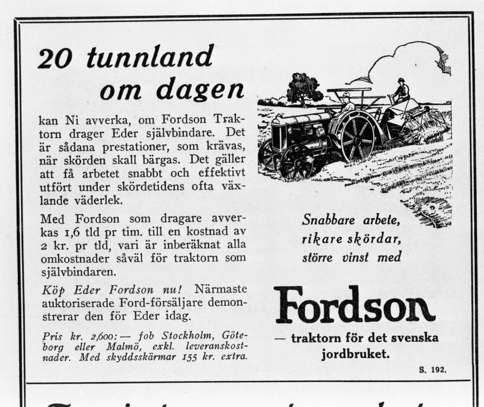 Annons från AB Bolinder-Munktell som säljer Fordsontraktorer.