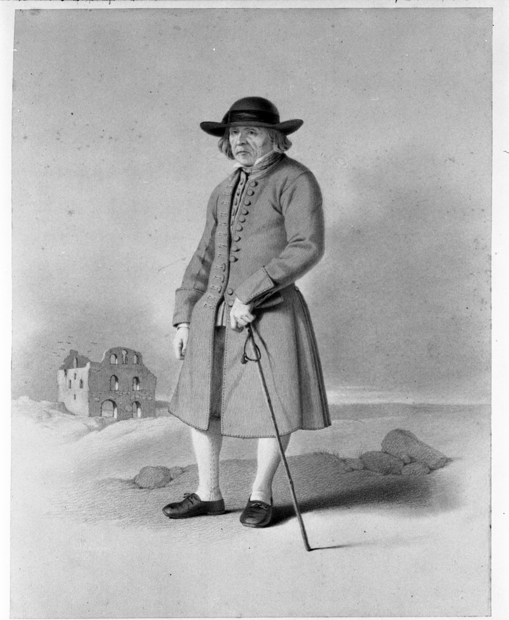dräkt; landskap; man; ridspö; ruin