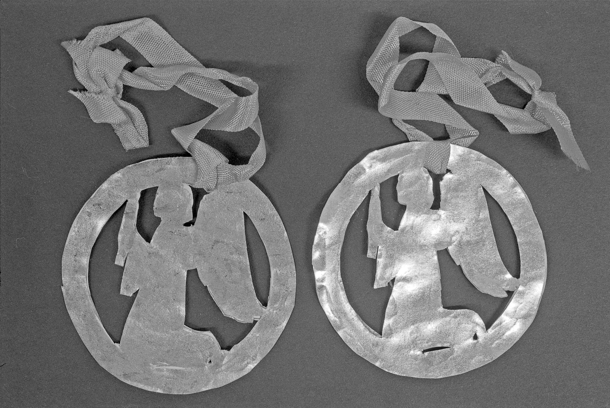 KM 79939. Rundlar med änglar, guld och silverpapper (2st).