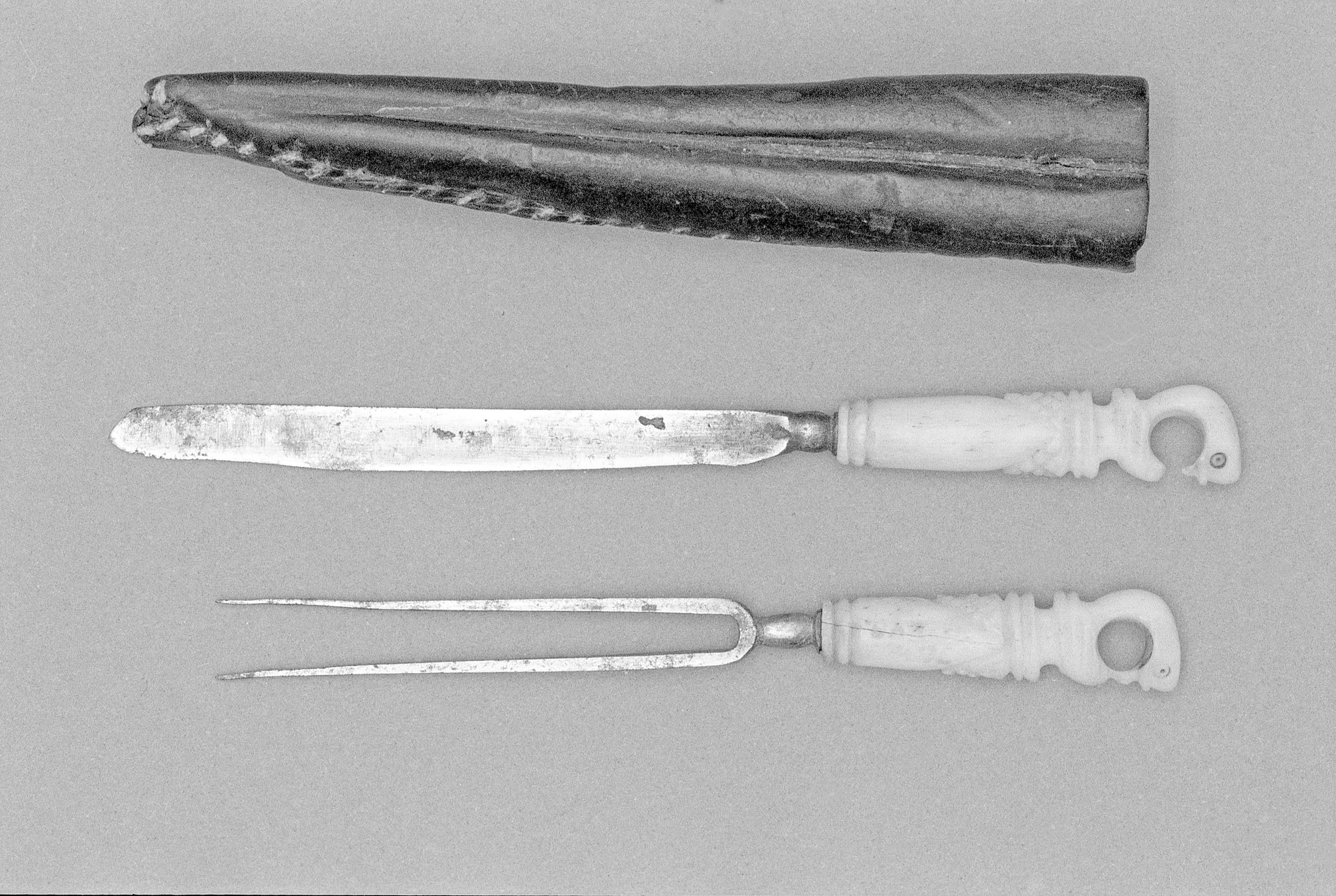 KM 10240. Knivbestick i fodral kniv + gaffel. Ben och järn.