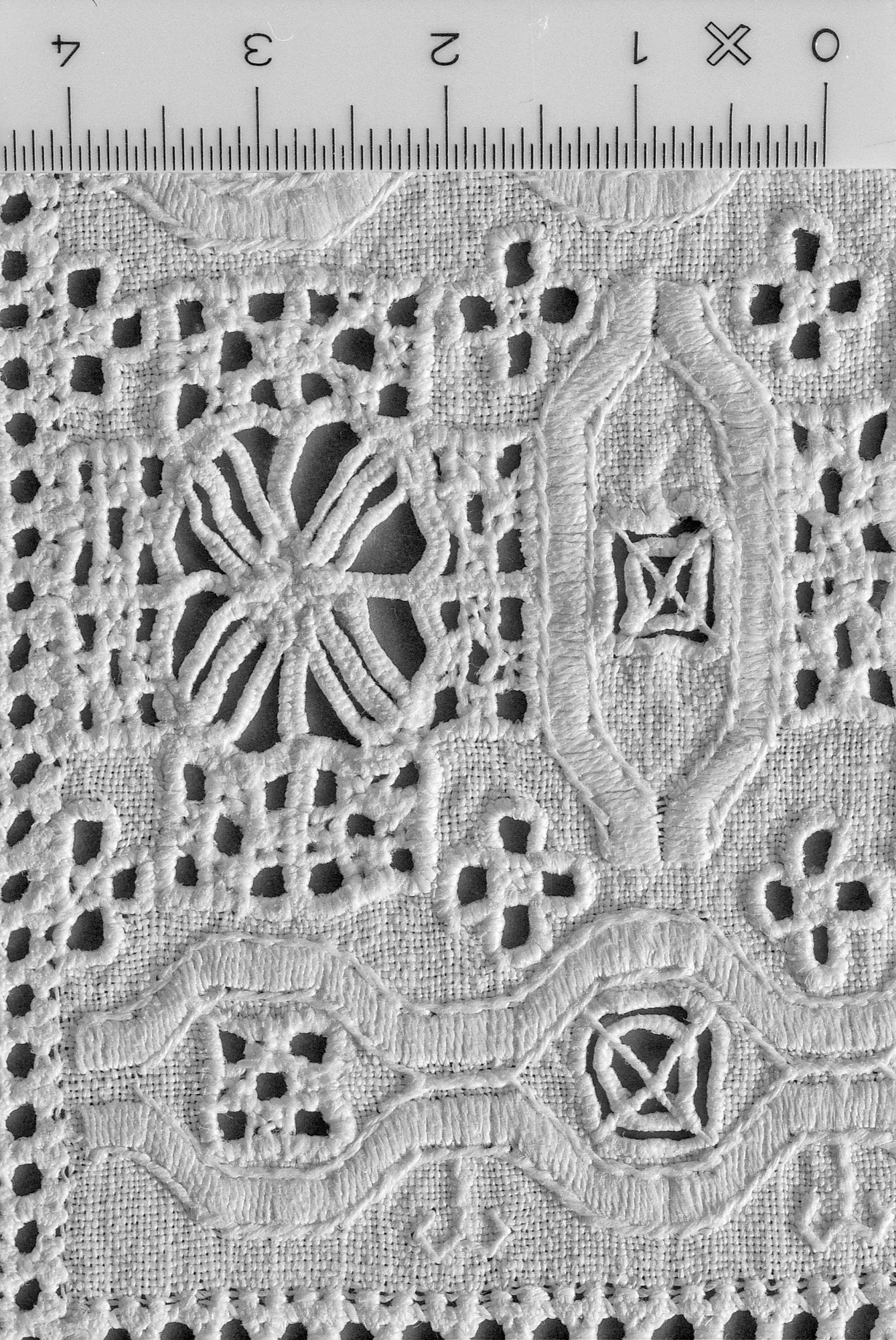 Främmande ägare. Duk. Parad eller bordsduk-detaljbilder. Publicerat i skriften "Krapperups museum 87".