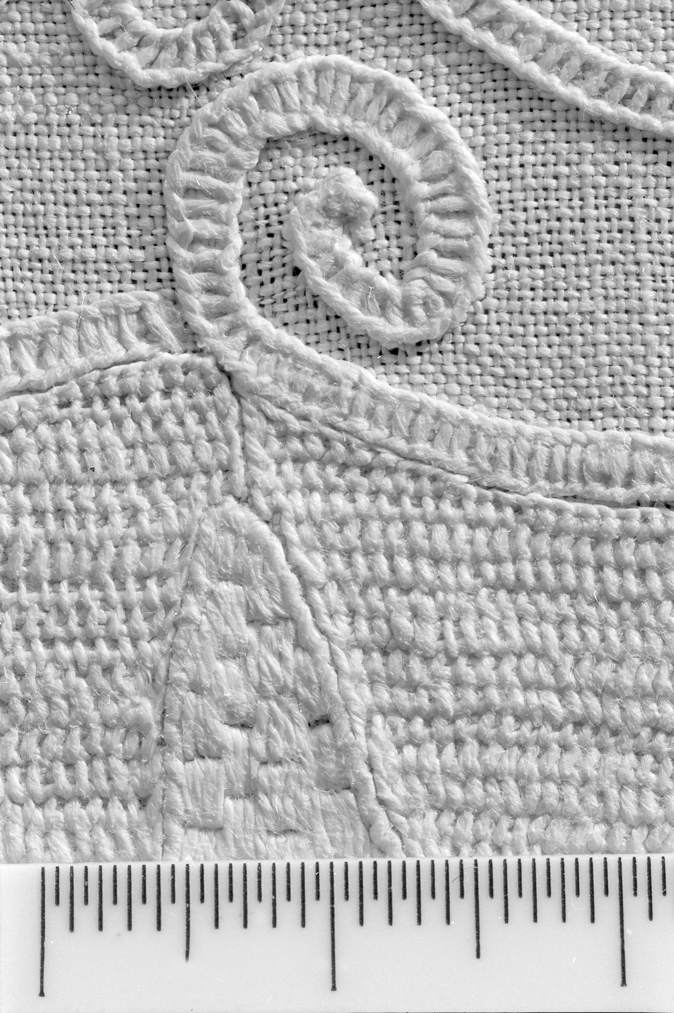 Främmande ägare. Duk. Parad eller bordsduk-detaljbilder. Publicerat i skriften "Krapperups museum 87".