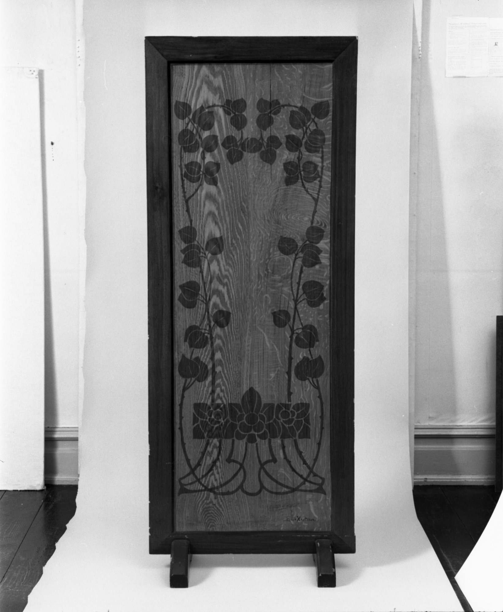 KM 51369. Prover på initotionsmåleri på träskärm.