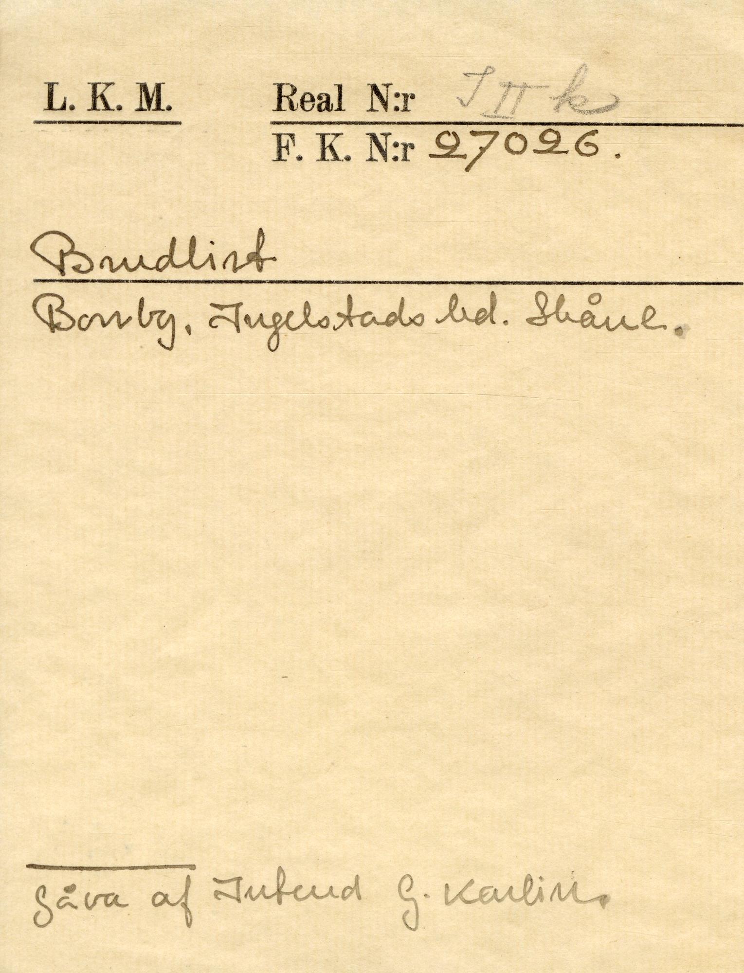 Rött, tunt ylle. Dekor av silver- och guldgaloner. Silver- och guldspets. Grönt kantband. En romb och tre hjärtan, mönstervävda ylleband.
