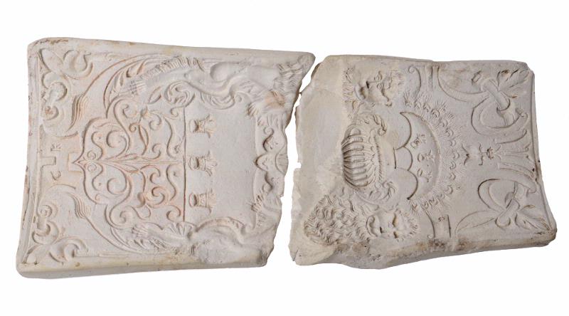 "Efter matrisen gjordes ett leravtryck, en patris, som brändes. Efter denna reliefbild gjordes i lågbränt lergods ett stort antal matriser, som användes i produktionen och i efterhand byttes ut."