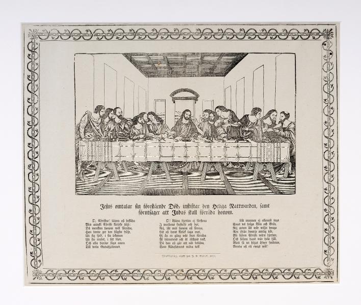 Jesus omtalar sin förestående Död, instiftar den heliga Nattvarden, (se forts.); (forts) samt förutsäger att Judas skall förråda honom.