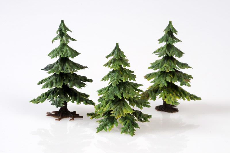 Gröna granar med brun fot.