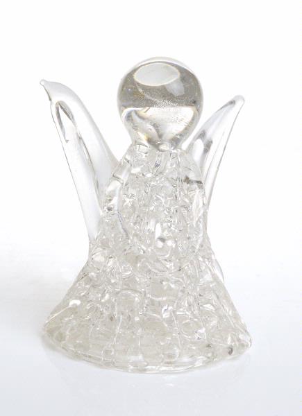 Ängel med slätt huvud, släta vingar och armar, medan klänningen är genombruten som ett nät.