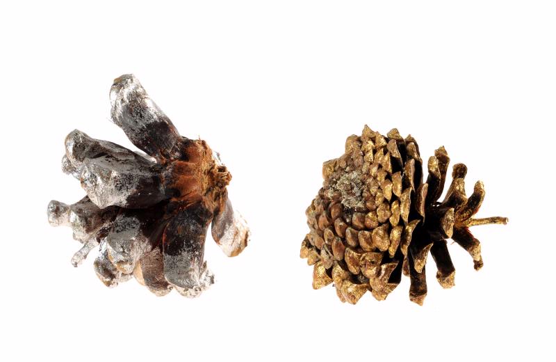 Med silver- och guldfärg. Förvaras i en brun pappkartong med texten KOTTAR på locket.