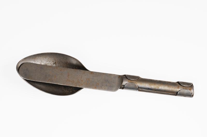 Ett set där gaffeln och kniven är fästa vid skedens skaft.