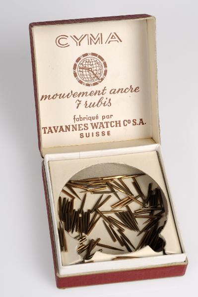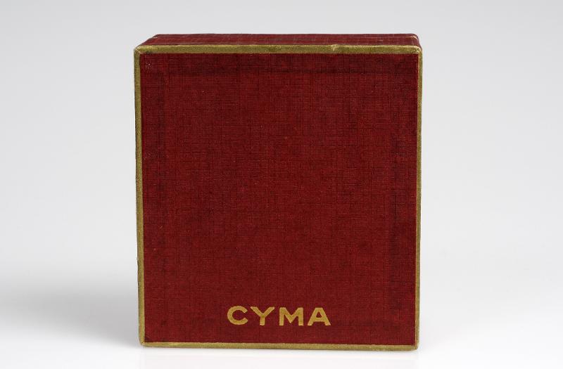 - Röd pappask med guldfärgade kanter och på locket står: CYMA i guldfärgat tryck. På insidan av locket finns text och en logotyp i brunt tryck. Förpackningen innehåller grammofonstift.