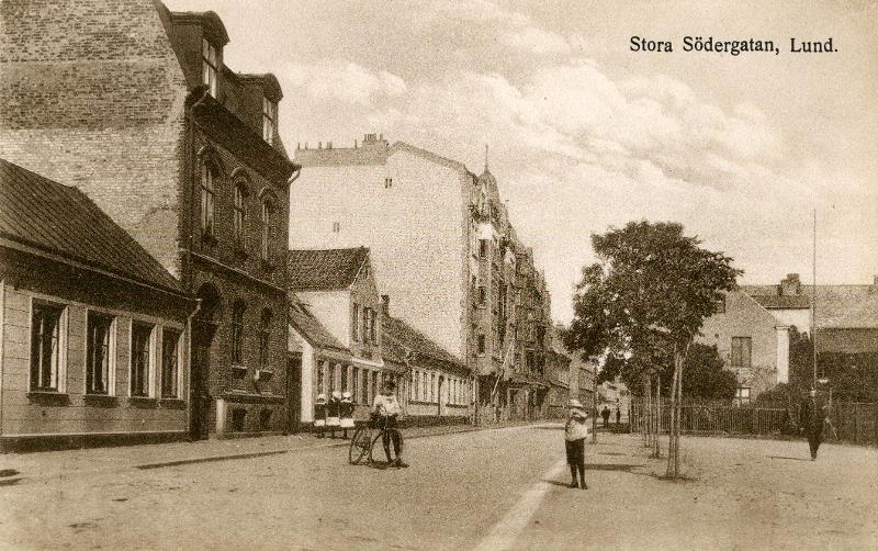 Svartvitt. Lund, Stora Södergatan, sedd från söder. Vykortet oanvänt.