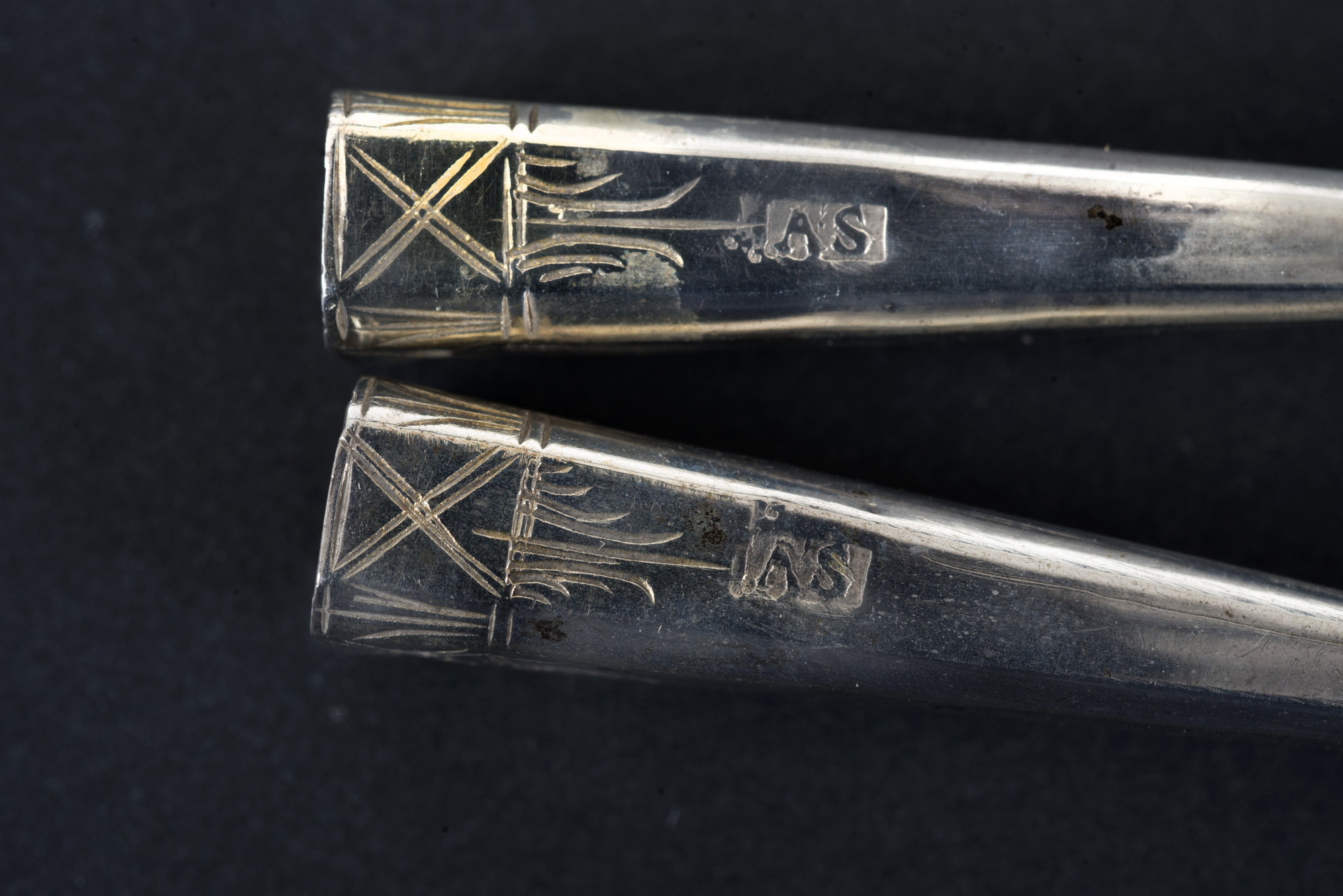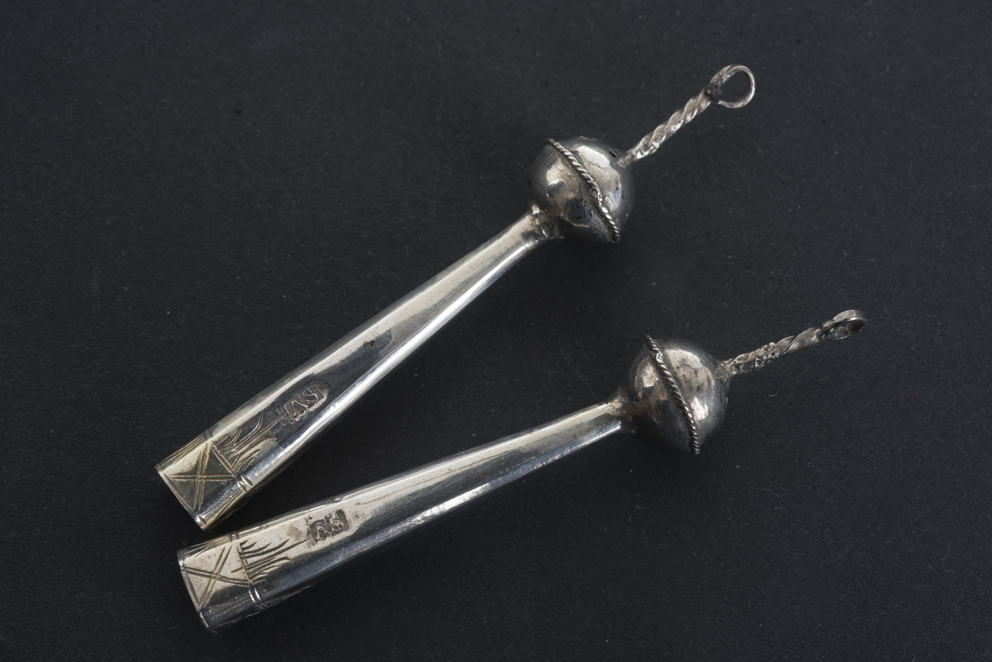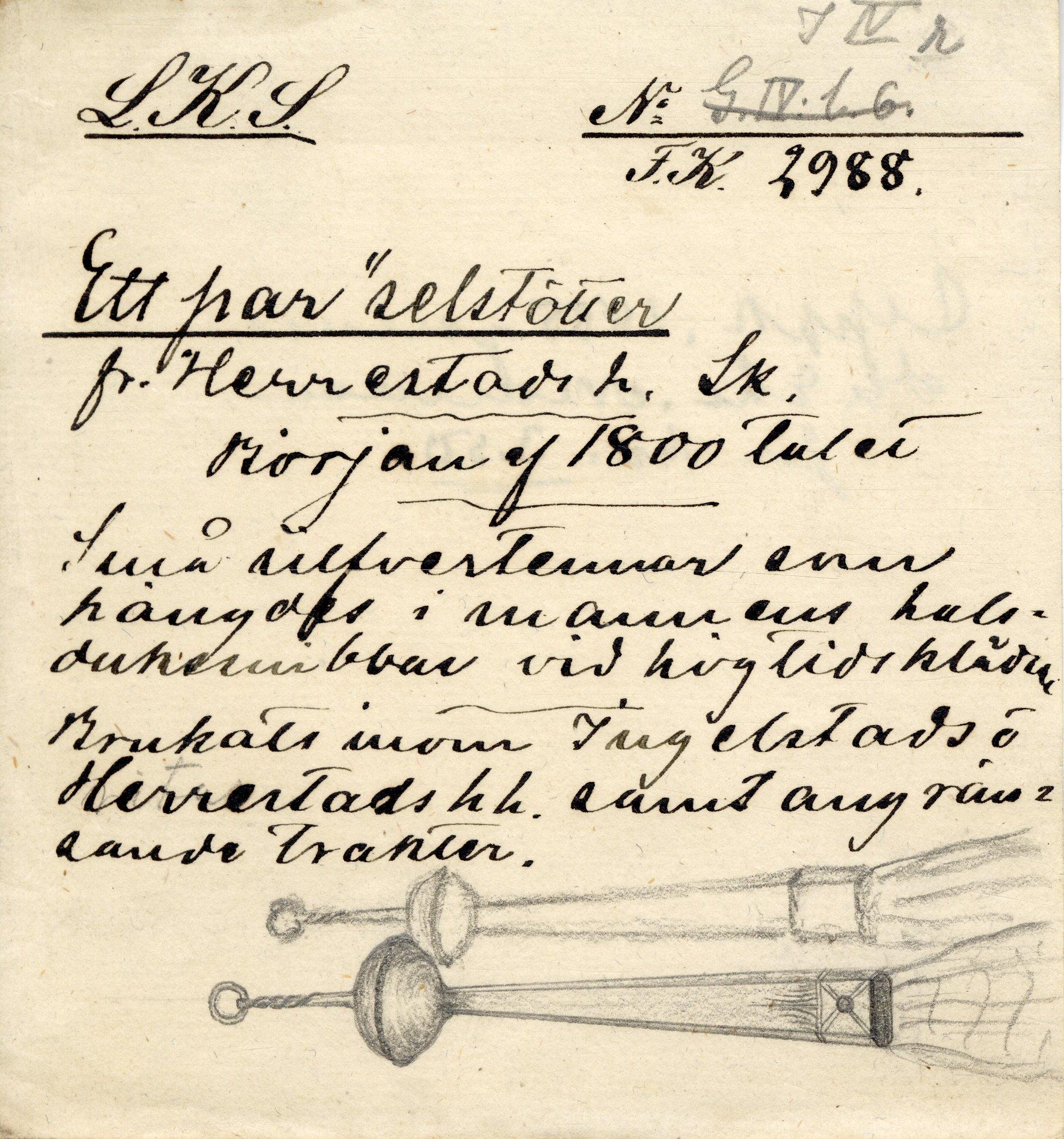 "Söllstöttor, ... tillverkad i Ystad av Andreas Silfverberg, ... 1800-talets förra hälft."